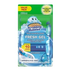 Scrubbing Bubbles Toilet Gel Stamps, Fresh Gel Toilet Cleaning Stamps, Helps Keep Toilet Clean and Helps Prevent Limescale & Toilet Rings, Rainshower Scent, 1 Dispenser with 24 Stamps