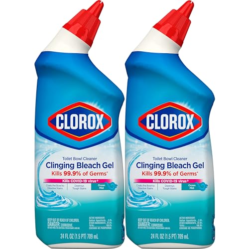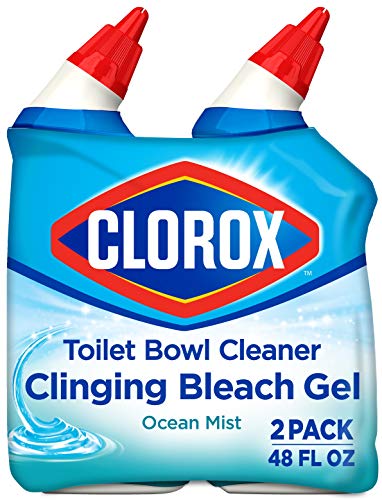 Details: Clorox Toilet Bowl Cleaner, Clinging Bleach Gel, kills 99.9% of germs and whitens and brightens your toilet bowl with the trusted power of Clorox Bleach. This powerful gel cleaner clings to your toilet bowl while it destroys tough stains, disinfects and eliminates odors with a fresh Ocean Mist scent. The only Toilet Bowl Cleaner with Clorox Bleach, this thick cleaning gel coats the bowl to provide a deep clean and rinses away for a sparkling clean. Uniquely angled, this dispensing nozzle makes it easy to tackle hard-to-reach areas under the bowl rim with a simple squeeze of the bottle. The clinging bleach action lets you power through the toughest toilet stains with confidence. Clean, disinfect, and let your toilet sparkle with Clorox Toilet Bowl Cleaner, Clinging Bleach Gel in a Ocean Mist scent.