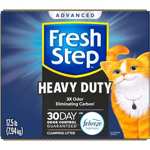 - CLUMPING LITTER: One 17.5-lb. box of Fresh Step Advanced Heavy Duty Clumping Litter With Febreze Freshness, featuring 3X odor-eliminating carbon (1) for Fresh Step’s longest odor-fighting formula (3)