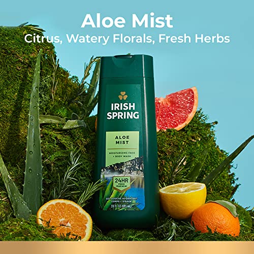 - Use Irish Spring Aloe Mist body wash scrub as a face wash or hand soap and stay fresh and clean all day long