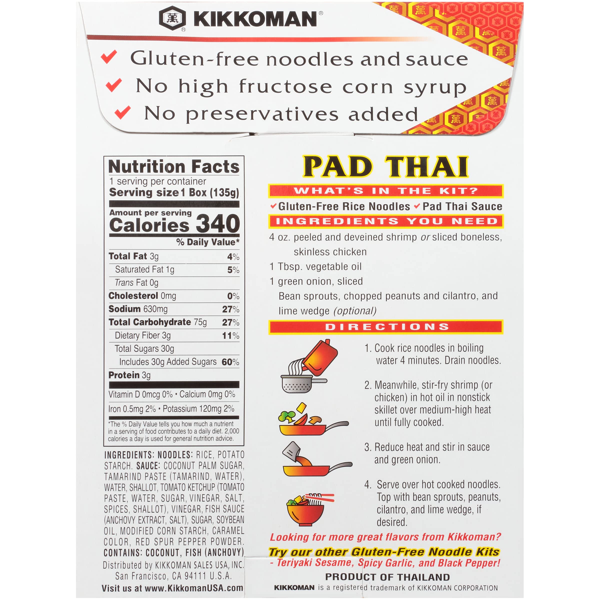 Details: Kikkoman Pad Thai Noodle Kit, Gluten Free, 4.8 Ounces (Pack Of 6)