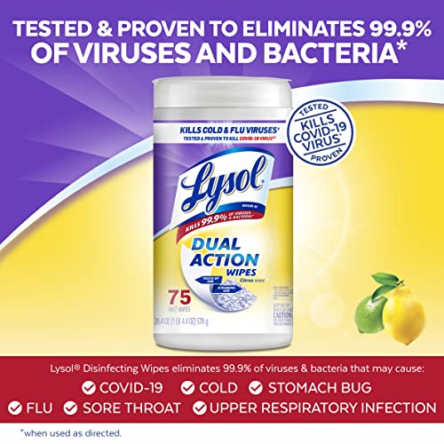 Lysol Dual Action Disinfectant Wipes, Multi-Surface Antibacterial Scrubbing Wipes, For Disinfecting and Cleaning, Citrus Scent, 75ct