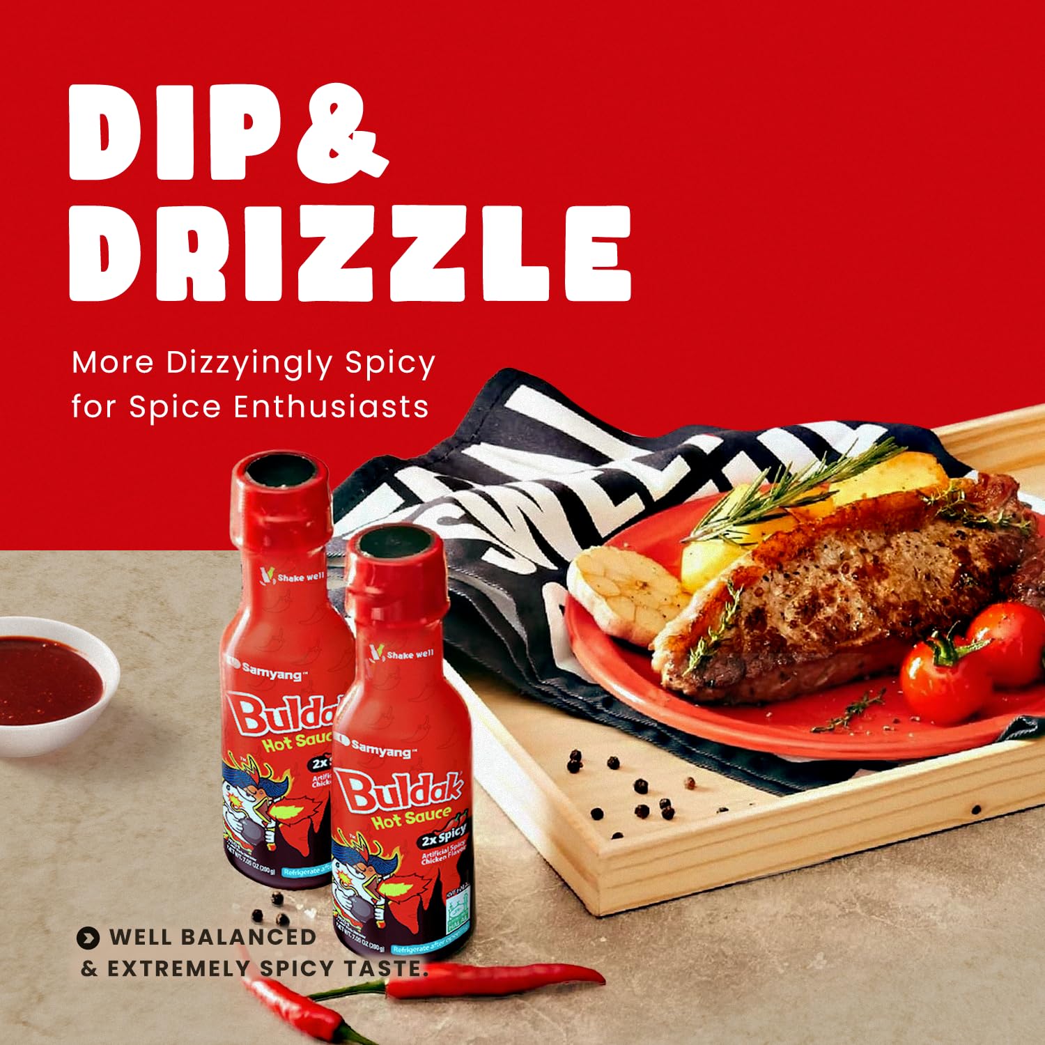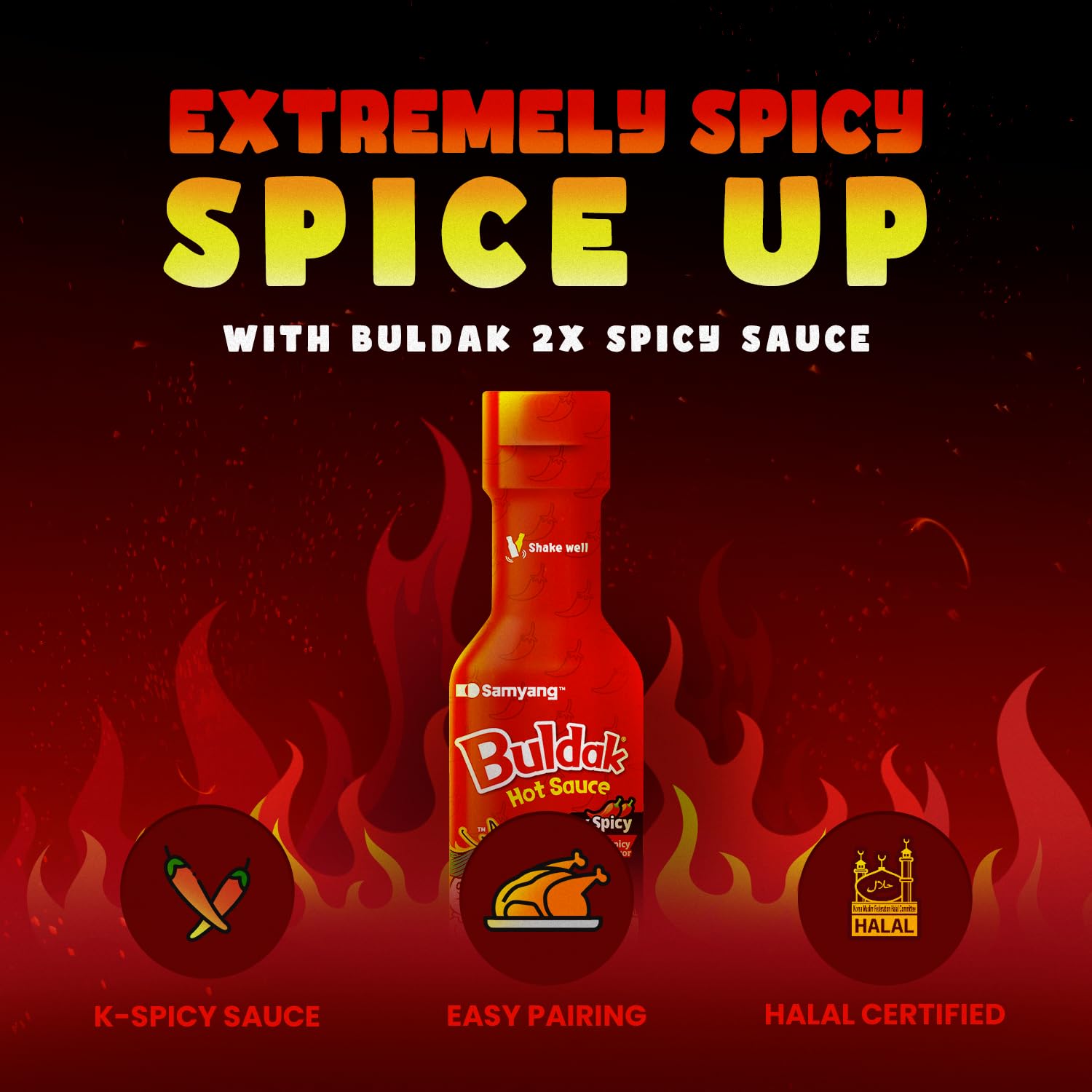 - EXTREMELY HOT BULDAK SAUCE – The spicy taste of addictive 2X Buldak has been reborn as a table sauce. It’s more intense and dizzyingly spicy. But you know, more spicy, more addicted. If you want to feel Korean extremely spicy taste, this sauce goes well with any food. From now on, enjoy the delicious taste of 2X Buldak in all dishes.